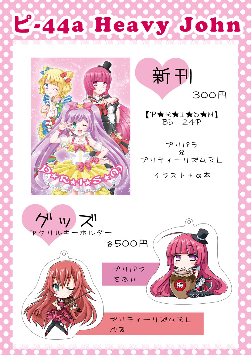 いつもは東方で出てるので二日目ですが今回プリパラで出るので一日目です。